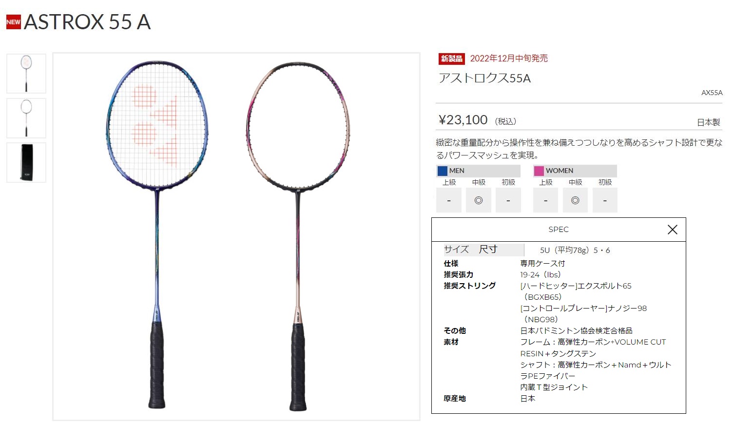 点击图片查看 YONEX AX55A 定価:21,000円+税金 支付宝/visa等打折 20%OFF 販売価格 16,800円 |