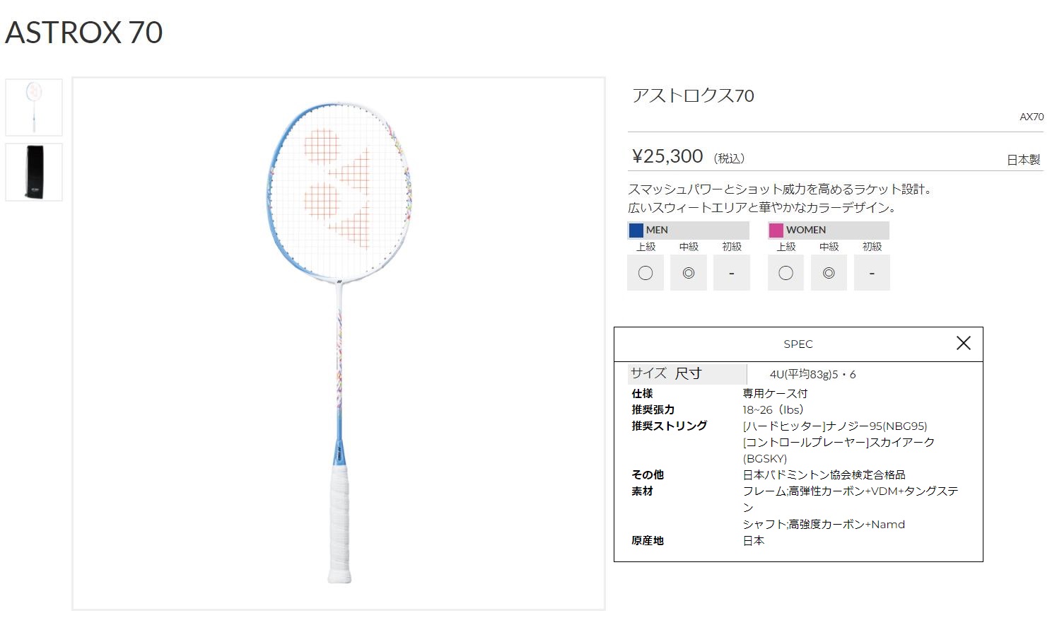 点击图片查看 YONEX AX70 定価:23,000円+税金 支付宝/visa等打折 20%OFF 販売価格 18,400円 |