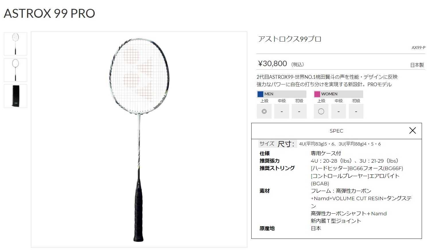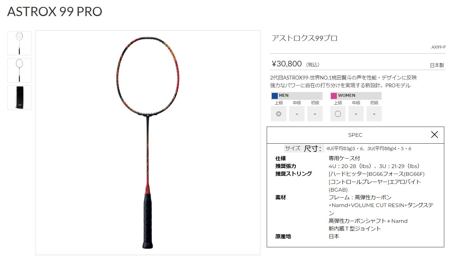 点击图片查看 YONEX AX99-P 定価:28,000円+税金 支付宝/visa等打折 20%OFF 販売価格 22,400円 |