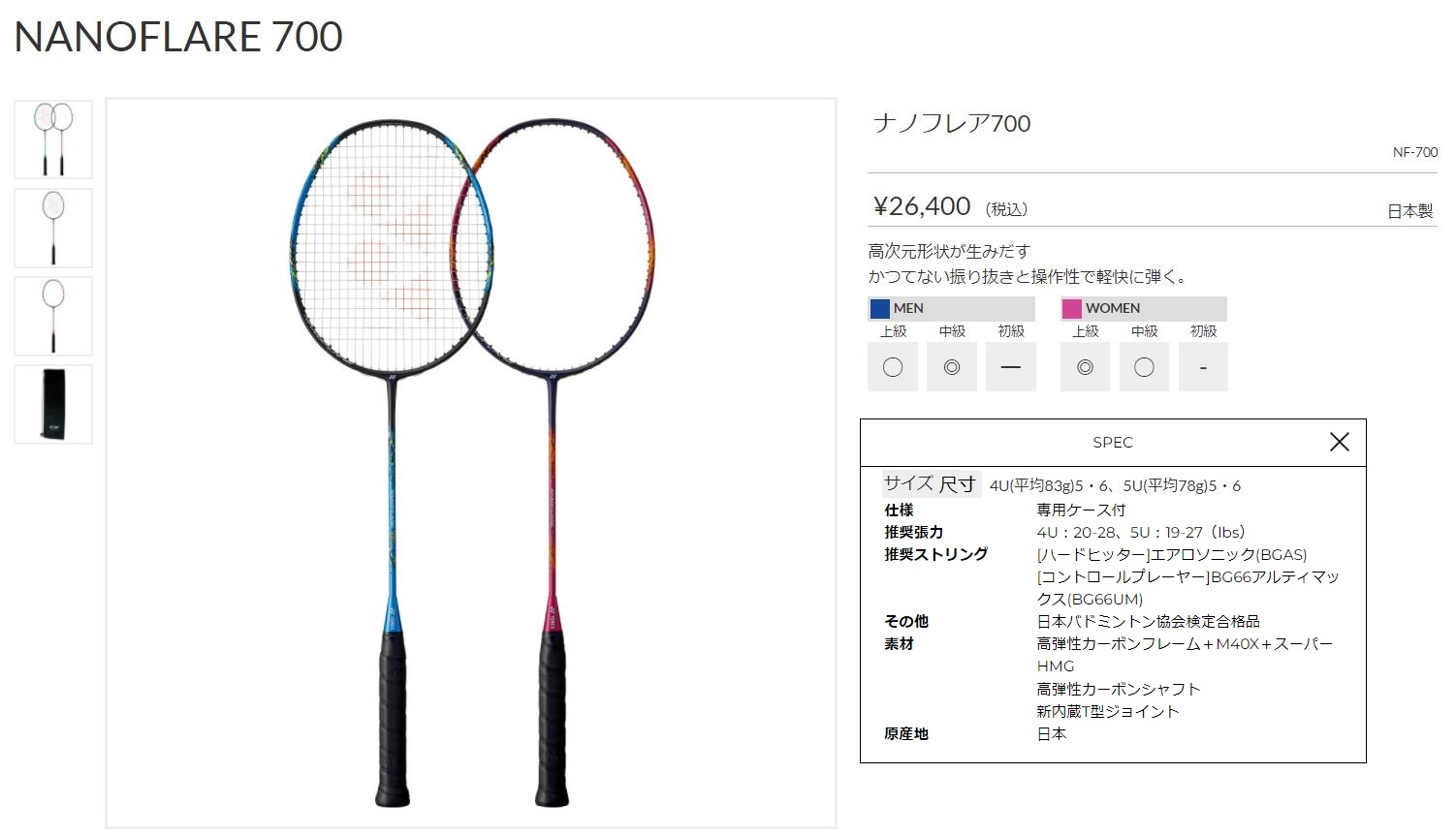 点击图片查看 YONEX NF700 定価:24,000+税金 支付宝/visa等打折 20%OFF 販売価格 19,200円 |