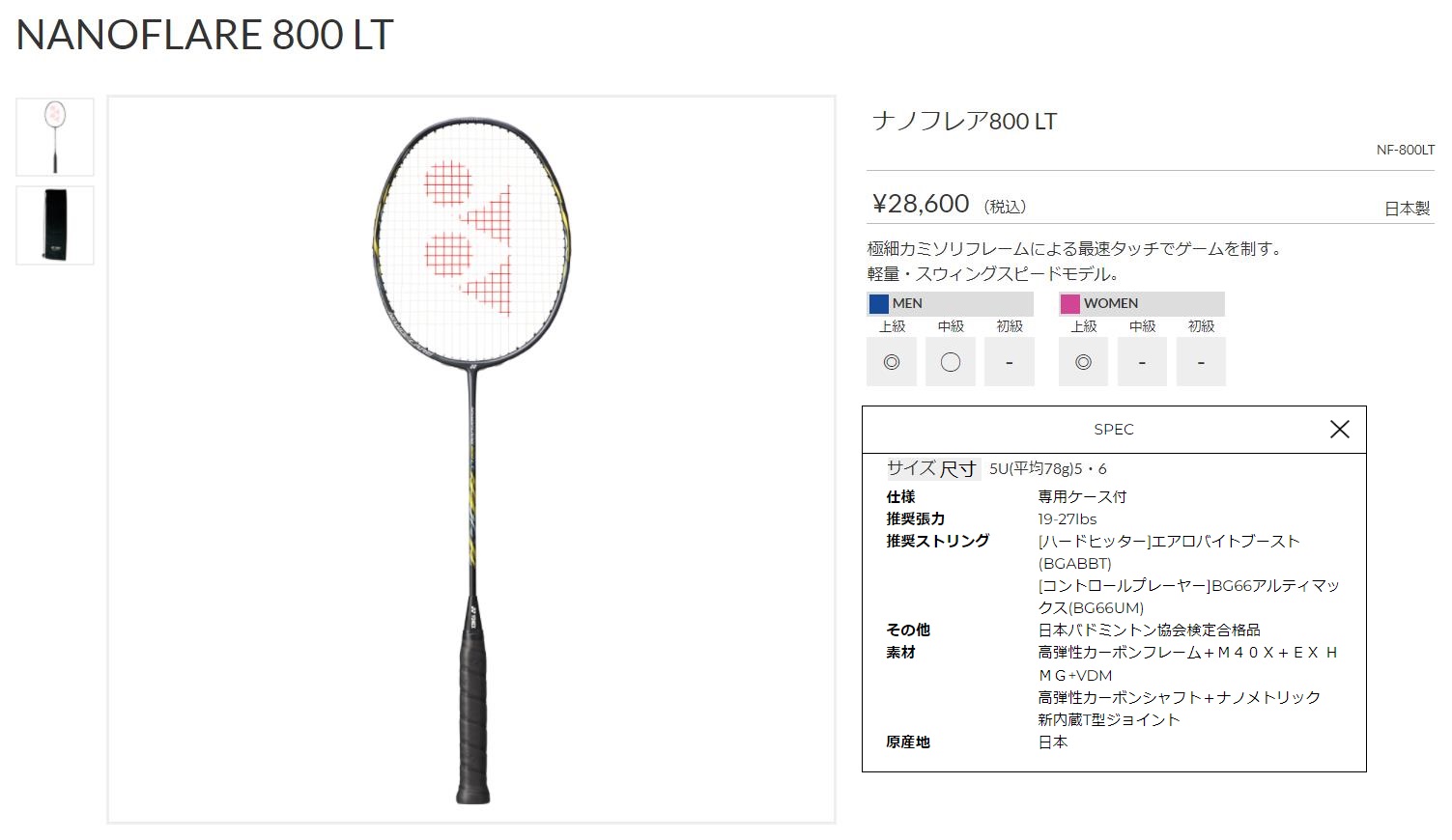 点击图片查看 YONEX NF800LT 定価:26,000+税金 支付宝/visa等打折 20%OFF 販売価格 20,800円 |