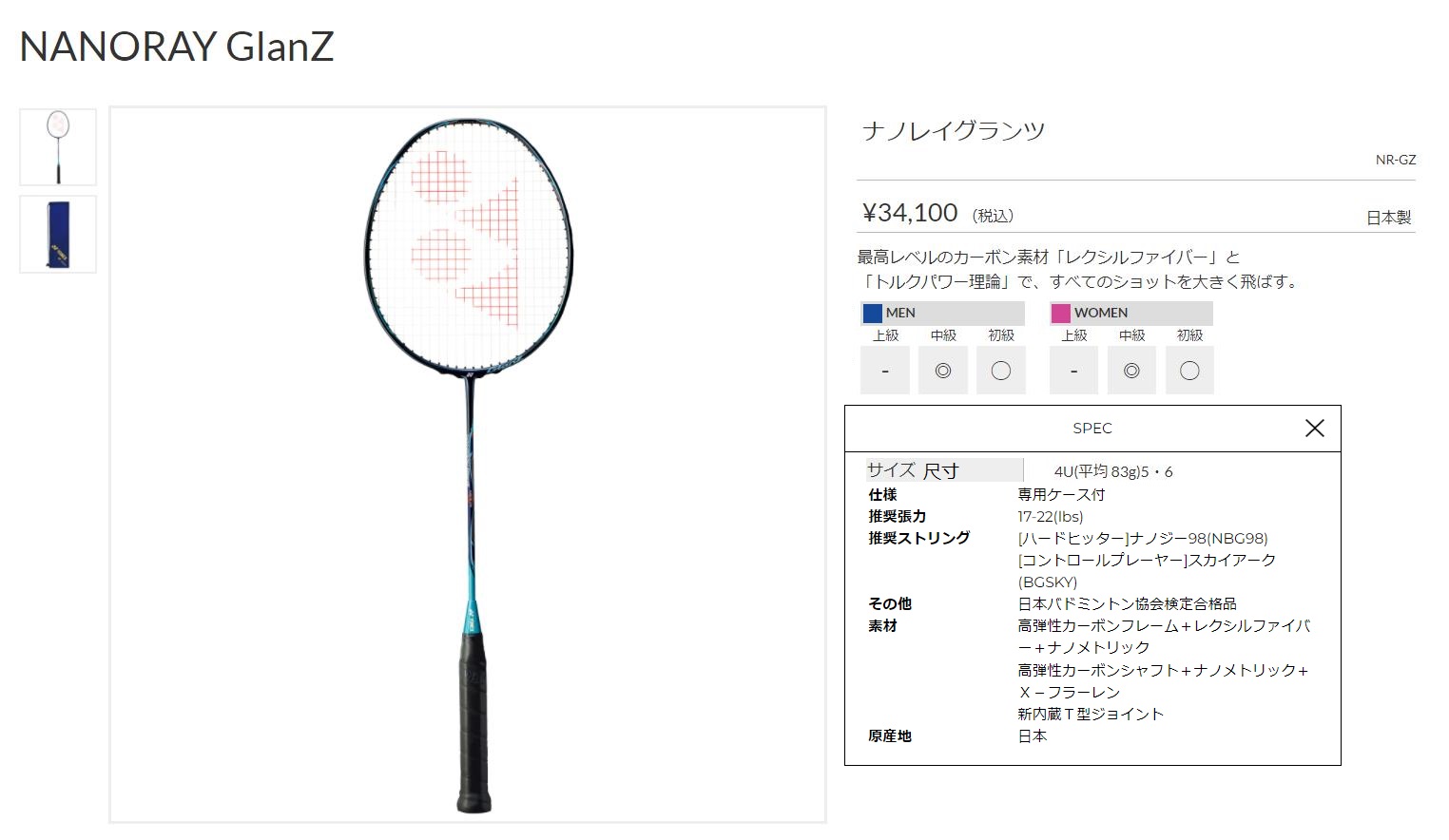 点击图片查看 YONEX NR-GZ 定価:31,000+税金 支付宝/visa等打折 20%OFF 販売価格 24,800円 |