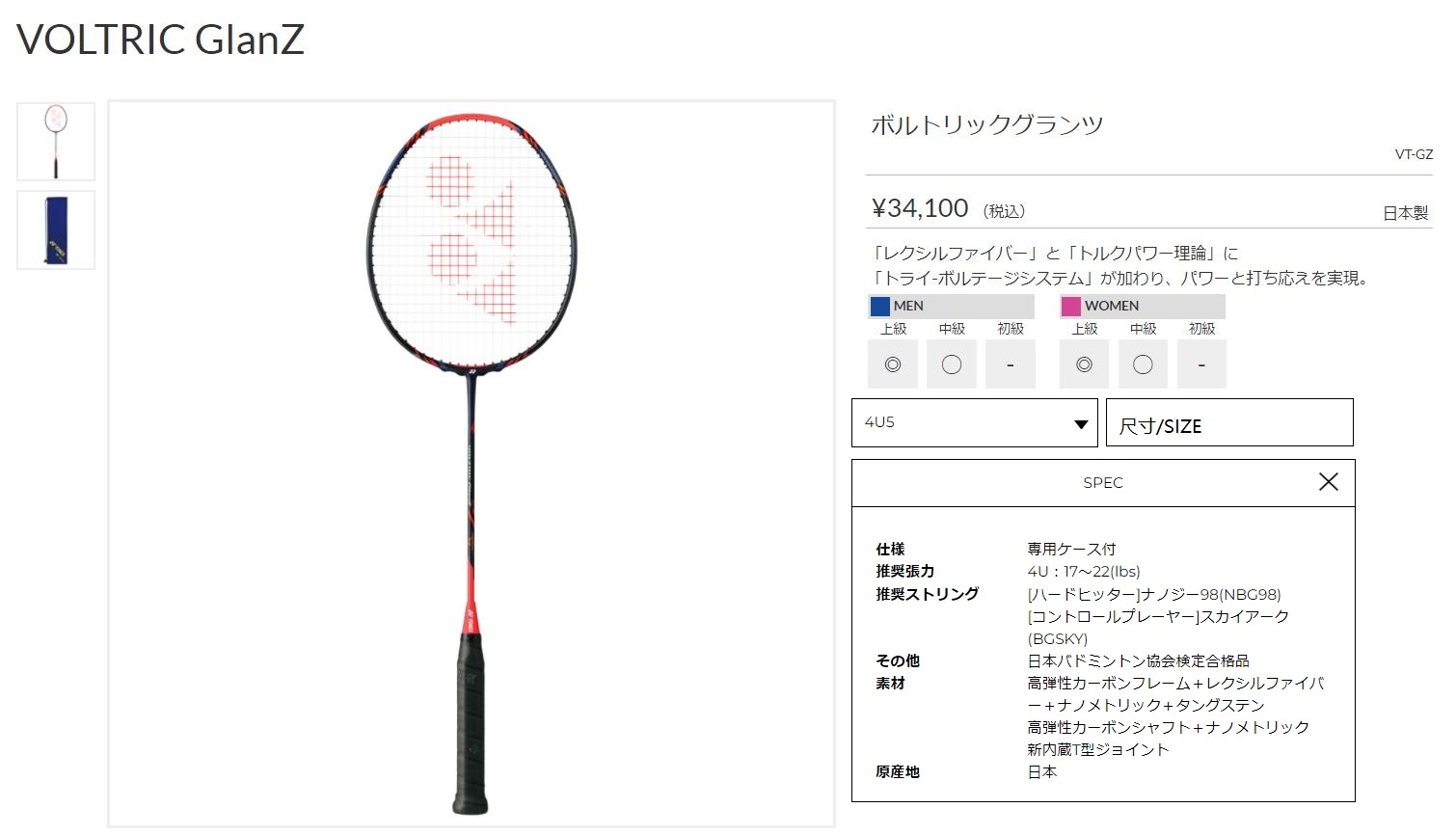 点击图片查看 YONEX VT-GZ 定価:31,000+税金 支付宝/visa等打折 20%OFF 販売価格 24,800円 |