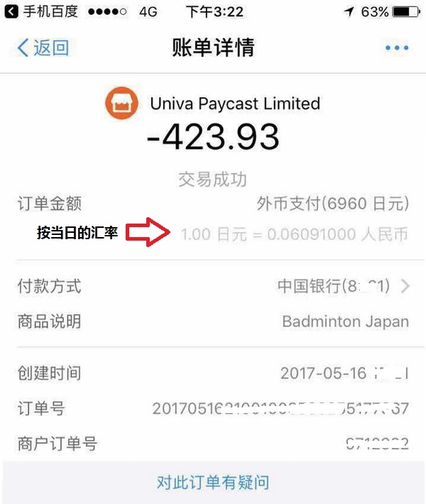 人民币汇换成日元到我们公司银行账户的商户用支付宝,所以比现金少打3%折扣。